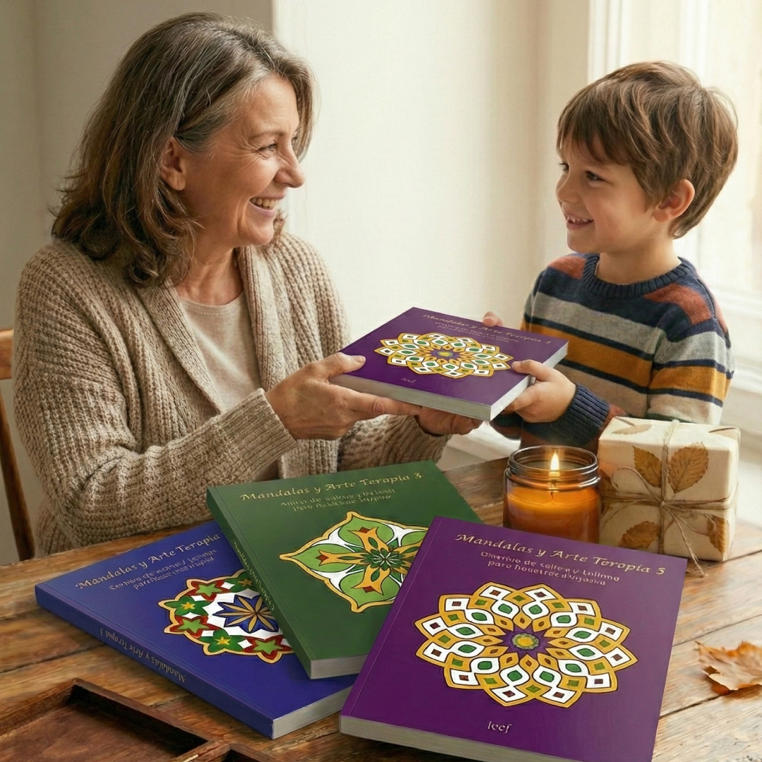Desde ese espíritu nace la nueva colección Mandalas y ArteTerapia: regalos de cAlma para nuestros mayores, tres libros creados con la intención de ofrecer un espacio de serenidad, bienestar y belleza a quienes más lo merecen: nuestros mayores. También en inglés: Mandalas and Art Therapy.